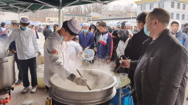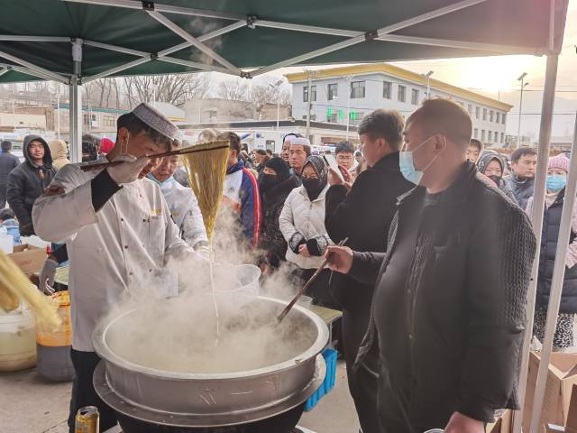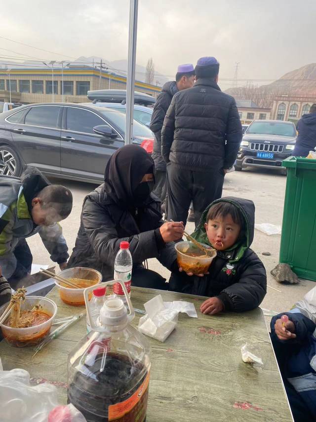 12月19日,甘肃积石山县大河家镇大河村广场的安置点,来自广河县的志愿者忙碌不停,受灾群众吃上了热腾腾的免费拉面。