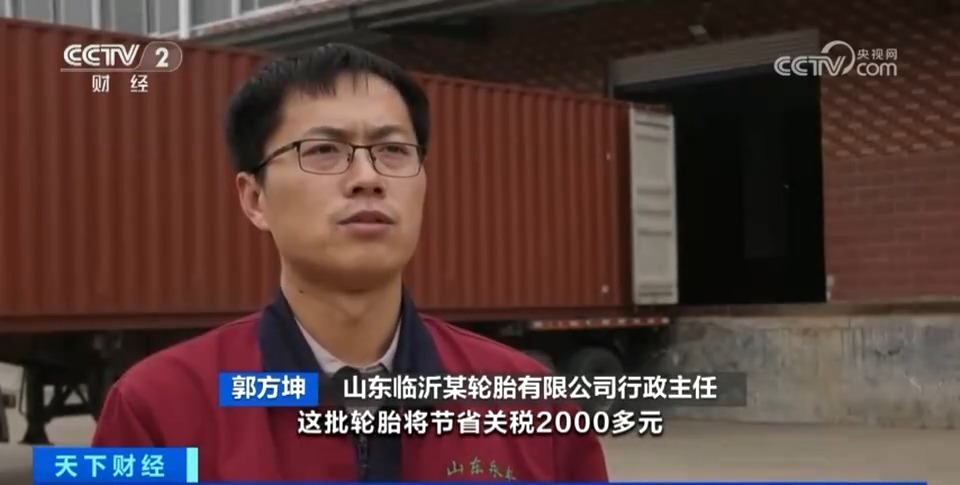 山东临沂某轮胎有限公司行政主任 郭方坤:这批轮胎将节省关税2000多元。如果按照2023年我们对尼加拉瓜出口400万元的销售额估算,协定生效第一年就能省税差不多4万元。