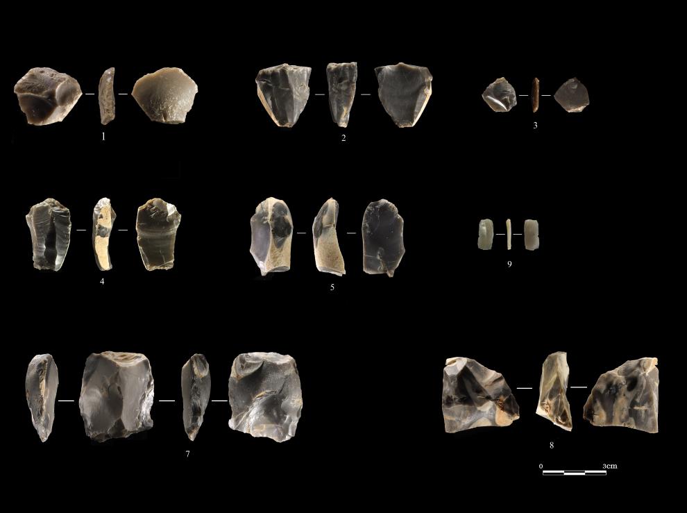 青池遗址第I发掘区出土的打制石器(旧石器时代)。天津市文化遗产保护中心供图