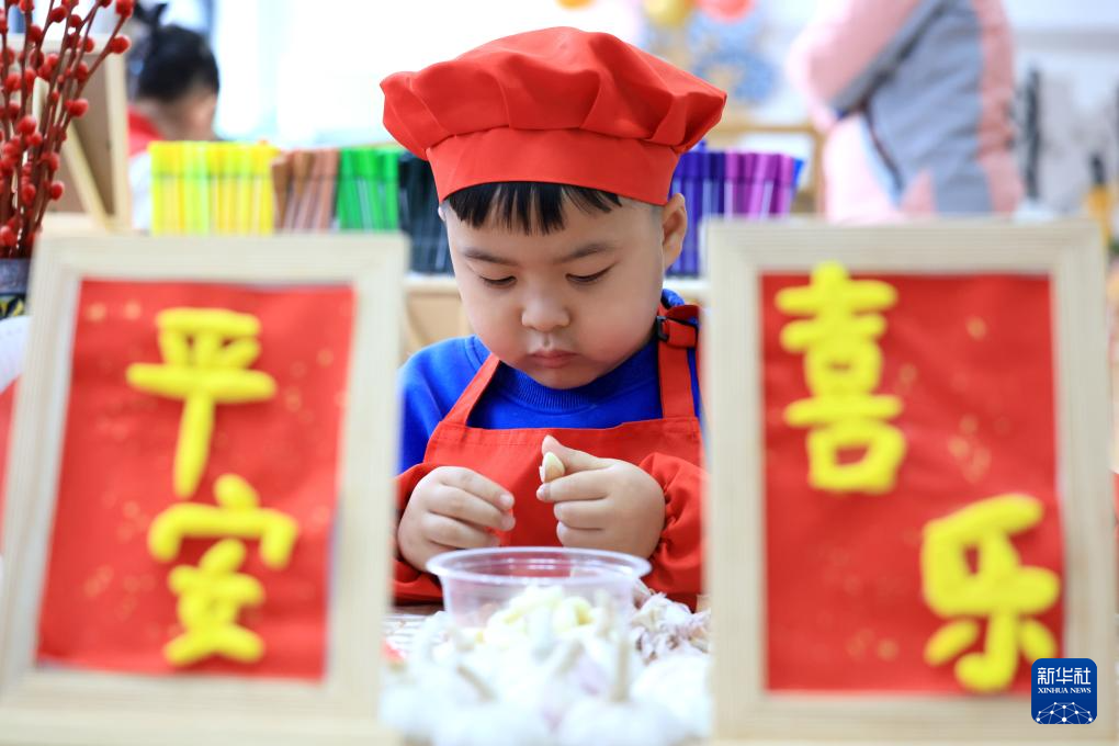 1月17日,山东省滨州市滨城区清怡幼教集团第十一实验幼儿园的孩子们在学习制作腊八蒜。