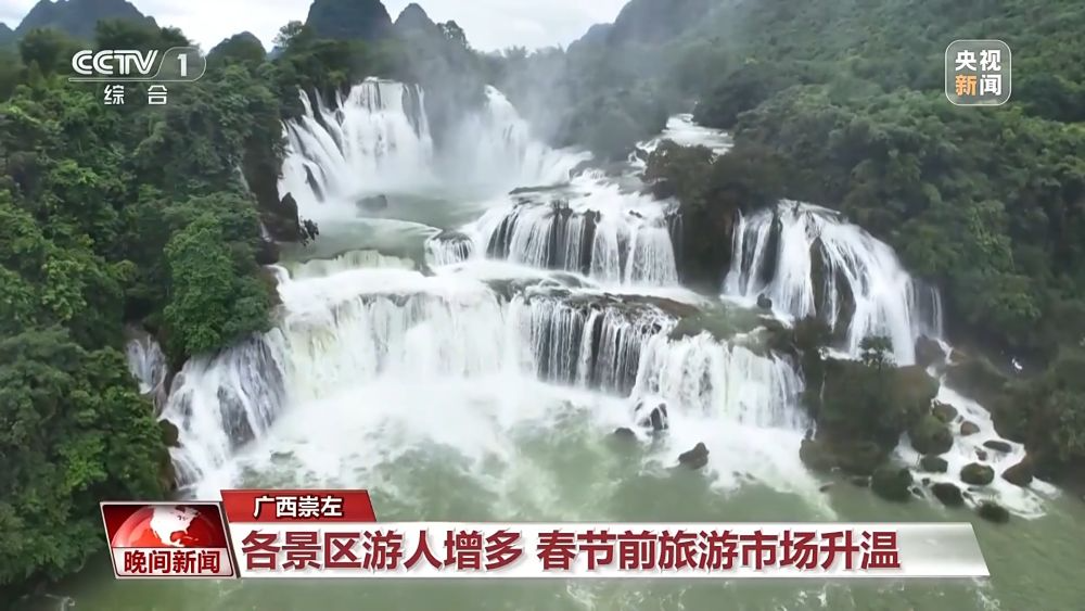 冰天雪地的北国风光让人着迷,而四季如春的南派风景,同样令人沉醉。在广西崇左的大新县,多个景区里,前来游玩的游客络绎不绝。有的眺望气势磅礴的瀑布,有的聆听特色的壮族民歌,还有的探访丰富多彩的壮乡文化,感受祖国大美山河的魅力。