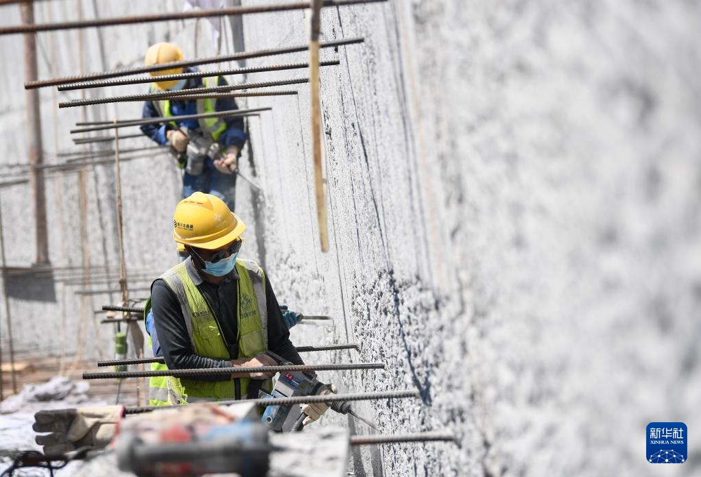 3月12日,中交第二公路工程局有限公司承建的狮子洋大桥西锚碇施工现场,工人在进行作业。