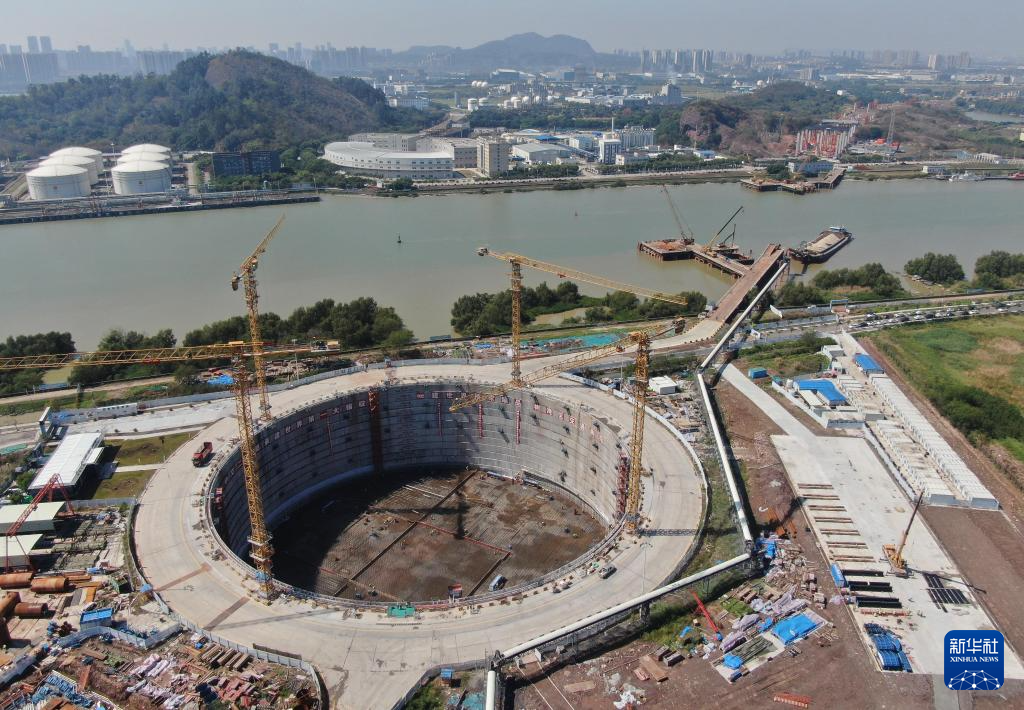 这是狮子洋大桥西主塔承台施工现场(3月12日摄,无人机照片)。