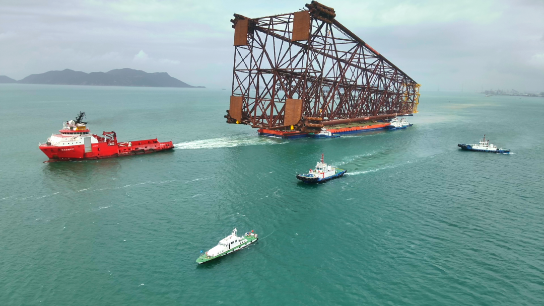 珠海海事局工作人员表示,为保障“海洋重器”顺利出港,珠海海事部门前期多次实地调研,充分评估通航风险,明确气象海况等限定条件,提前发布船组拖带信息,提醒沿线船舶远离避让。出港时通过VTS+无人机+海巡船“立体巡航”为拖带船组保驾护航,最终实现了顺利出港。