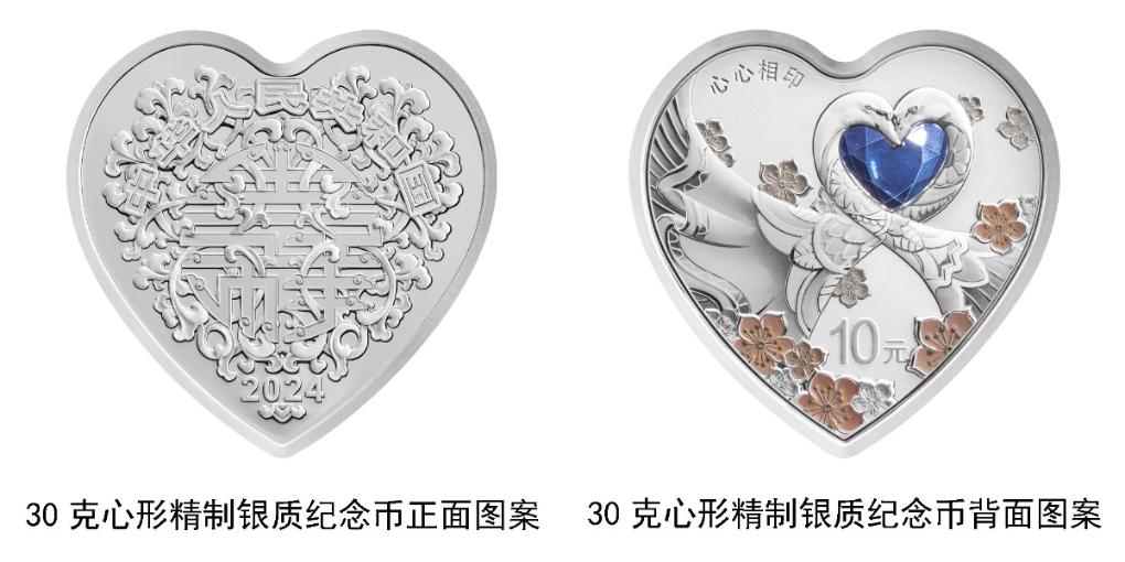 中国人民银行5月13日对外宣布,将于2024年5月20日发行2024吉祥文化金银纪念币一套。其中,两枚心形纪念币引人关注。