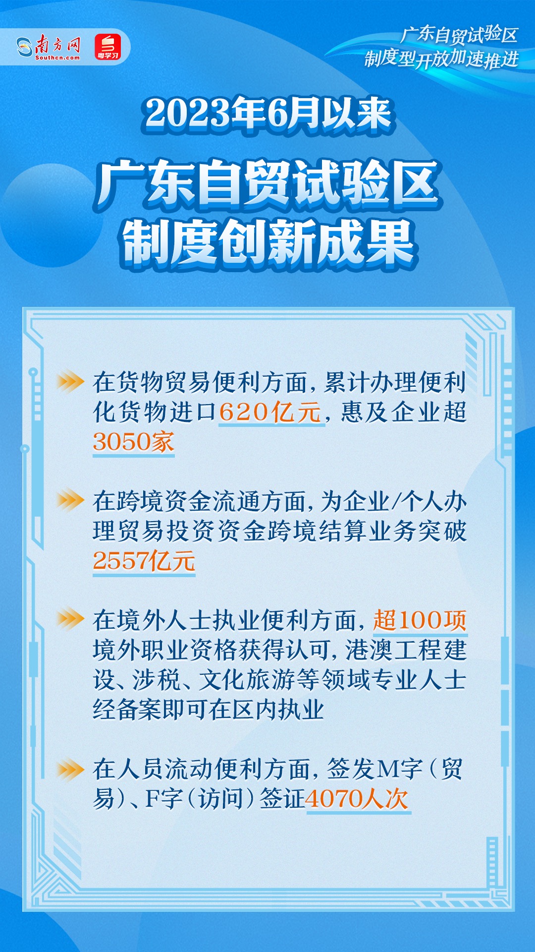 2023年6月,国务院印发《关于在有条件的自由贸易试验区和自由贸易港试点对接国际高标准推进制度型开放的若干措施》以来,广东坚持以开放促改革、以创新促发展,自贸试验区制度型开放加速推进,各项成绩斐然。