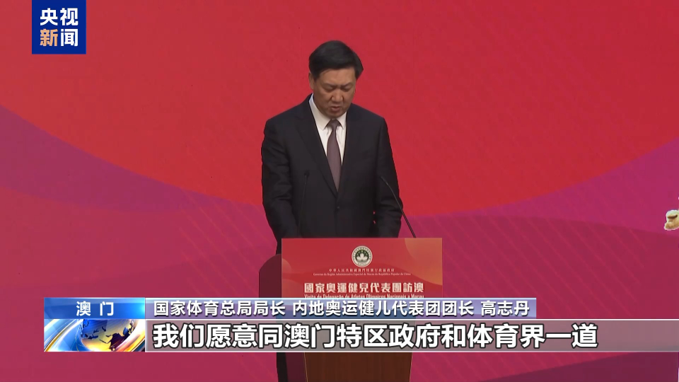 国家体育总局局长 内地奥运健儿代表团团长 高志丹:我们愿意同澳门特区政府和体育界一道,以举办第十五届全运会为契机,全面加强澳门与内地体育交流合作,深入促进粤港澳大湾区融合发展。为推动两地体育发展,维护澳门长期繁荣稳定,推进新时代“一国两制”伟大事业,作出更大贡献。