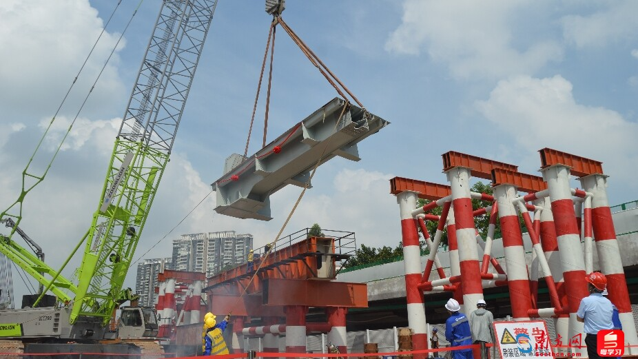 “珠江四线特大桥与城市快速路广佛放射线交叉施工,施工区域狭小、主体结构复杂、技术标准高、施工难度大。”施工单位中铁十二局项目管理员徐步齐介绍。为此,广铁集团广州工程建设指挥部组织各参建单位科学编制计划,精心组织施工,合理配置资源,加强管控安全质量,切实推行安全穿透式网格化管理,高质量完成钢桁梁拼装场建设、大型吊装设备安装、钢桁梁杆件及高强螺栓进场验收、安全防护设施设置等各项准备工作,实现各环节衔接有序、安全可控。