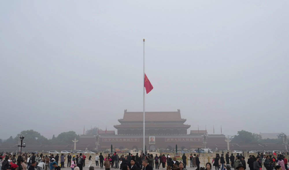 10月14日,为悼念吴邦国同志,首都天安门下半旗志哀。