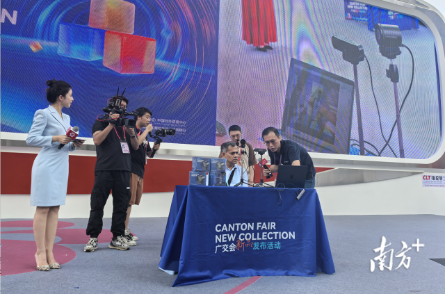 10月16日,广交会展馆的中央平台人来人往,主舞台上,广交会新品发布活动热火朝天地进行着。