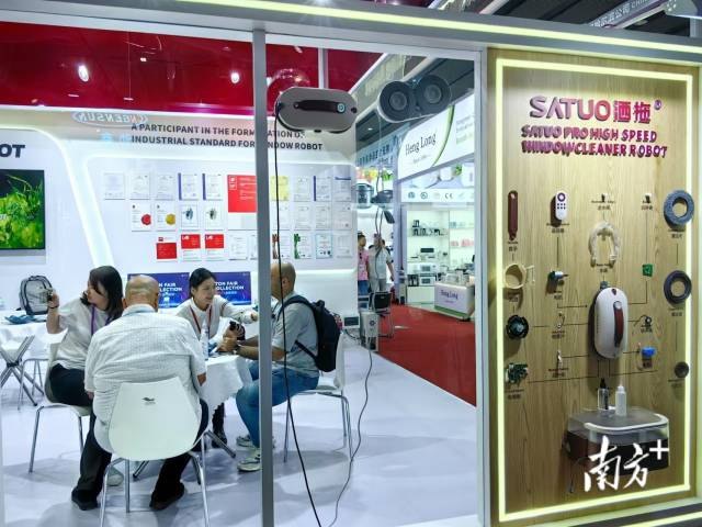 在山西嘉世达机器人技术有限公司的展位上,新品S9 Pro 擦窗机器人灵敏地运作,不一会儿就把整块玻璃擦干净了。