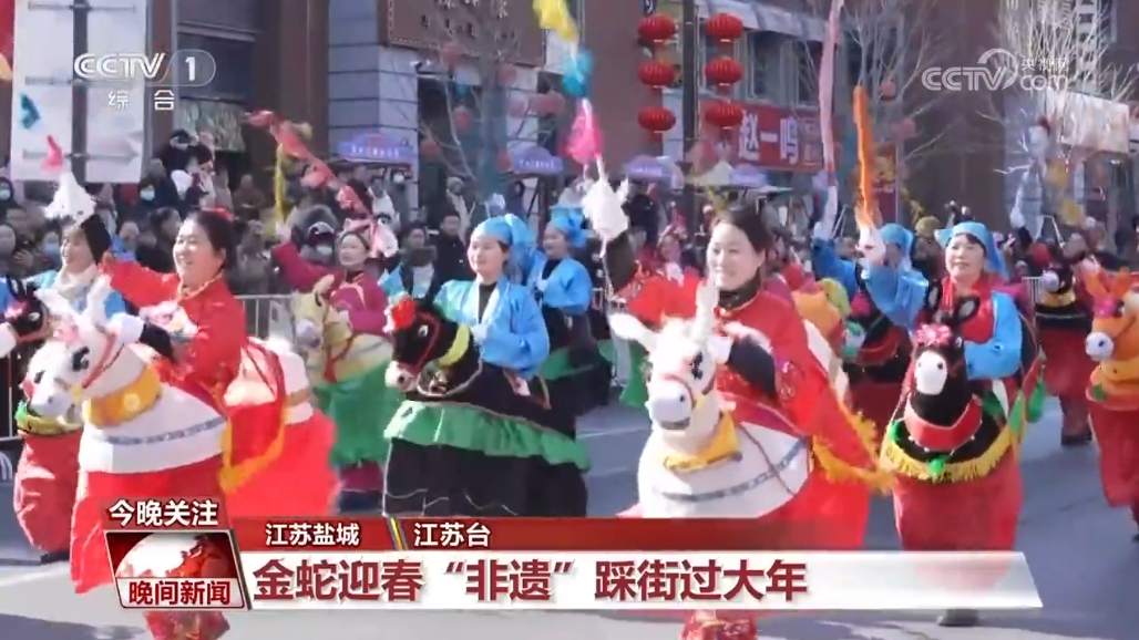 江苏盐城:金蛇迎春“非遗”踩街过大年