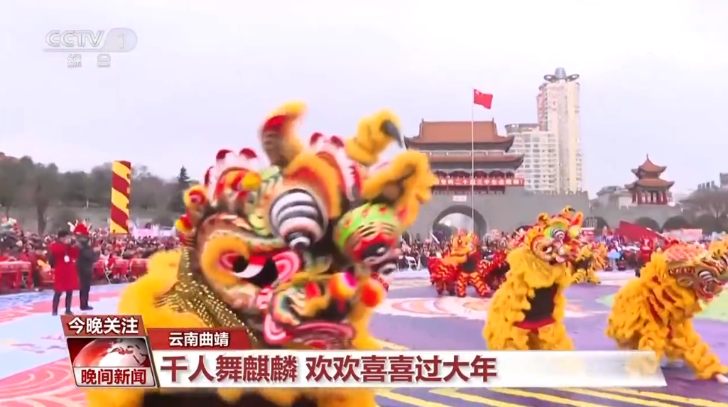 云南曲靖:千人舞麒麟 欢欢喜喜过大年