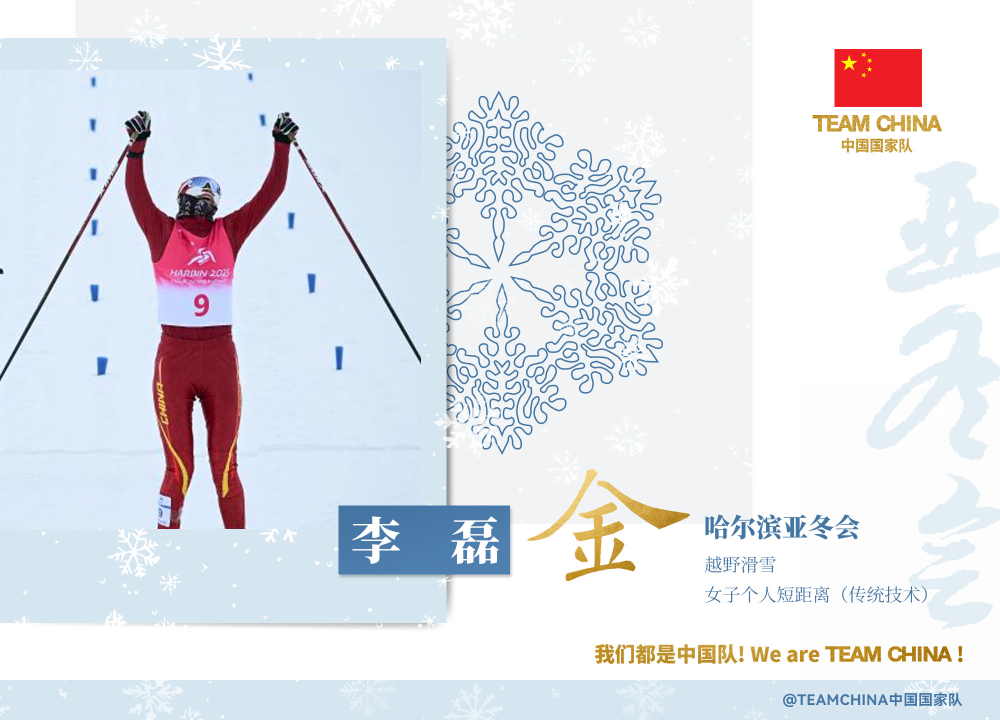2月8日,在哈尔滨亚冬会越野滑雪女子个人短距离(传统技术)决赛中,中国选手李磊、孟红莲、陈玲双包揽前三名!李磊以3分25秒25的成绩夺得金牌!