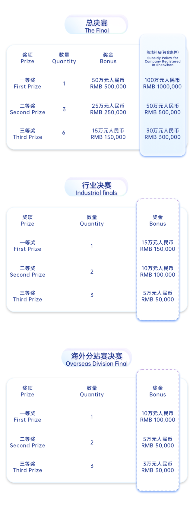 4.曾获得第一届中国深圳海外创新人才大赛及历届中国深圳创新创业大赛奖项(含国内赛和国际赛)的选手及项目不能重复参加本届大赛。