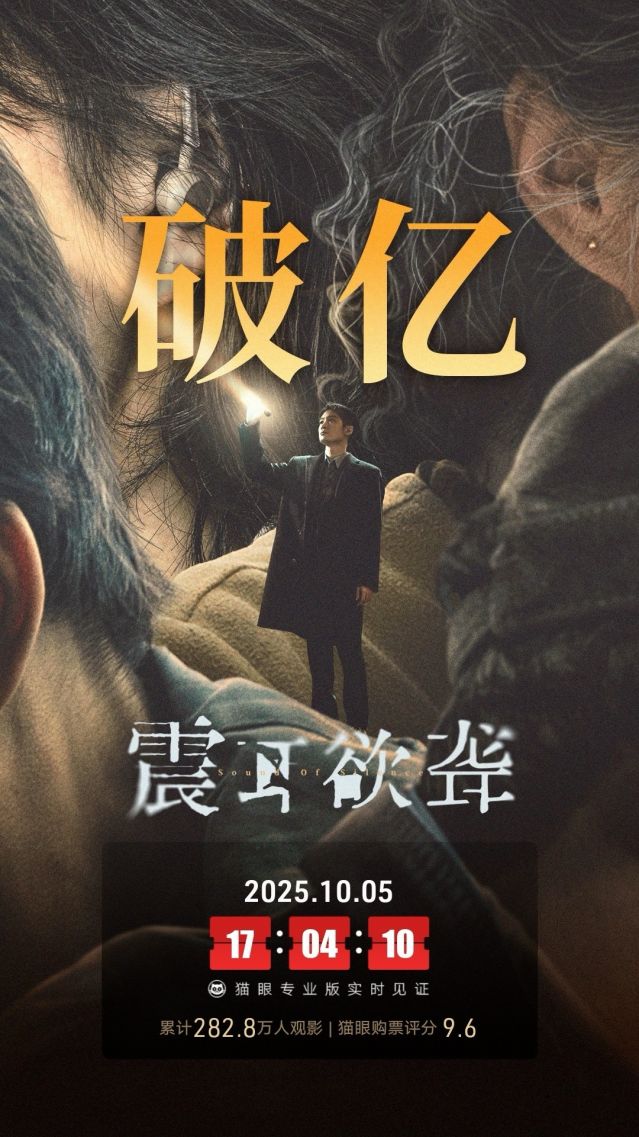 10月4日新映的《震耳欲聋》上映首日票房接近4000万元,以10.7%的排片占比贡献了16.5%的票房占比。影片在淘票票平台开分高达9.6分,展现出成为“黑马”的潜力。今日该片累计票房超1.3亿元,豆瓣开分达到7.6分,目前为国庆档新片最高分。