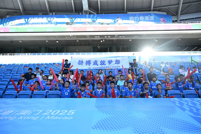 在看台上,来自皇岗小学的足球教师王翔带着约50名孩子来到深体,感受全运会的氛围。值得注意的是,广东队主力左边后卫钟文泽小时候就在皇岗小学上学。看着昔日弟子走上全运会赛场,王翔非常开心:“钟文泽小时候还小小一个,现在已经长高很多了,但是技术特点没有变,他在边路的突破依然很犀利。”说罢,他翻开了手机相册,展示着以前带钟文泽去比赛的照片,笑容停不下来。