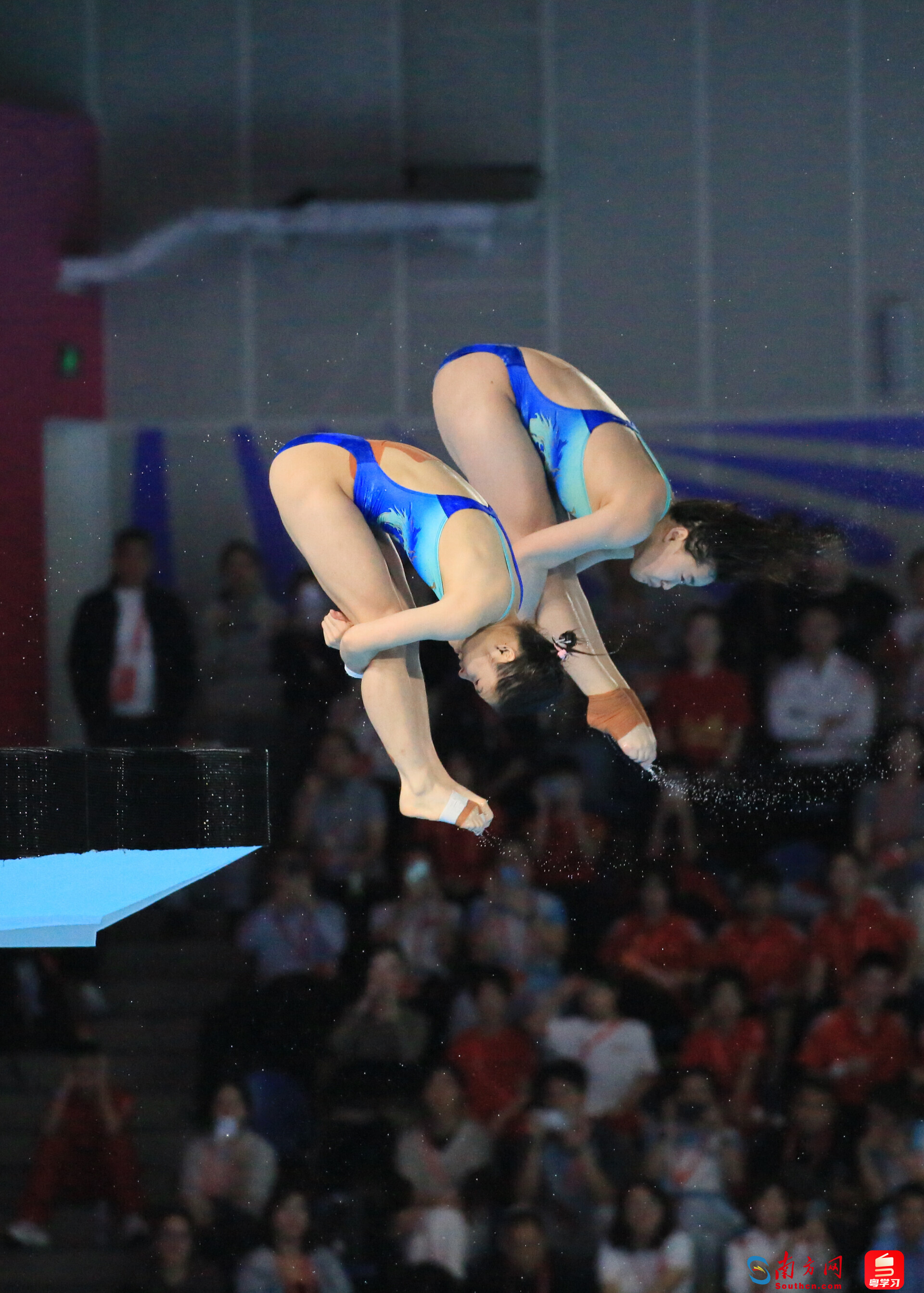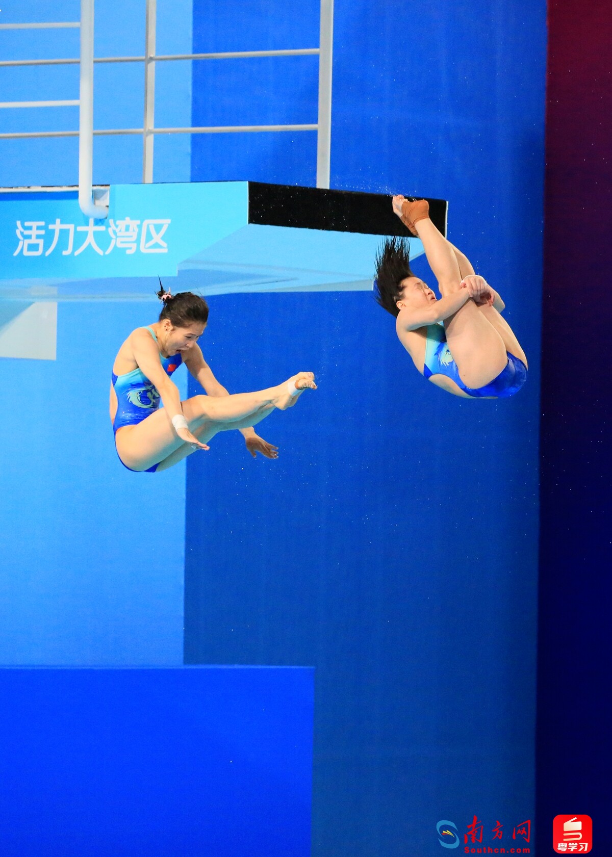 全红婵和王伟莹在比赛中。图:南方网、粤学习记者 刘竞宇