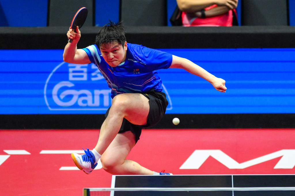 11月15日,樊振东在比赛中回球。新华社发(张金加摄)