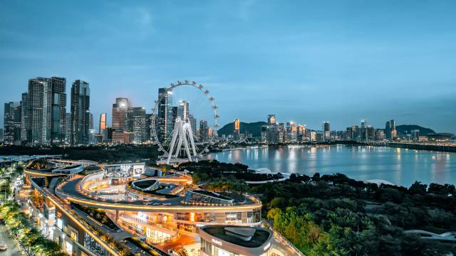 海岸沿线象征改革开放的地标前海石、观赏世纪晚霞的环湾都市沙滩、128米高“湾区之光”摩天轮、闭幕式全球最大实体书城“湾区之眼”等依次排开,再加上鳞次栉比的现代化高楼大厦,构成“山、海、湾、城、桥”独特城市风貌,成为“城市全景”的极致地理选择。