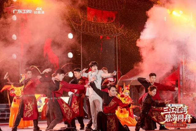 晚会特邀音乐人刘彰原创说唱作品《赤马》,结合非遗女子布马舞进行编排,彰显出奔腾、勇气、奋进的马年新气象。第十五届全国运动会会歌《气势如虹》激昂响起,歌手们以极具力量感的歌声,致敬各行各业里默默坚守的劳动者,诠释湾区儿女的拼搏精神,传播湾区昂扬的精神风貌。