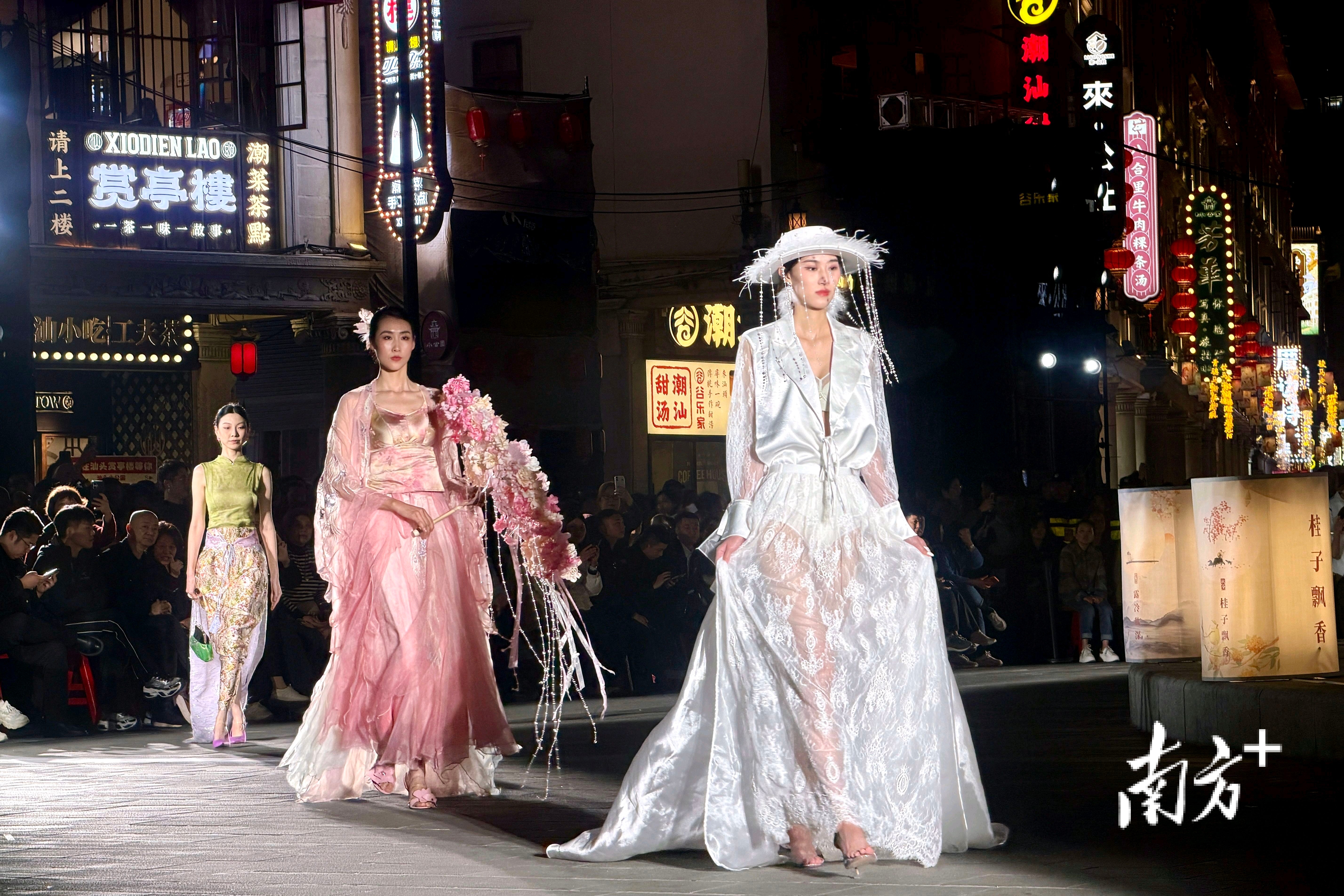 正如洪裕静所说,本届大秀在服装设计上将潮绣、潮剧等非遗元素创新融入设计;而在秀场打造上,将秀场落地汕头小公园,有着让非遗技艺、地标建筑、产业实力三者深度融合的深意。