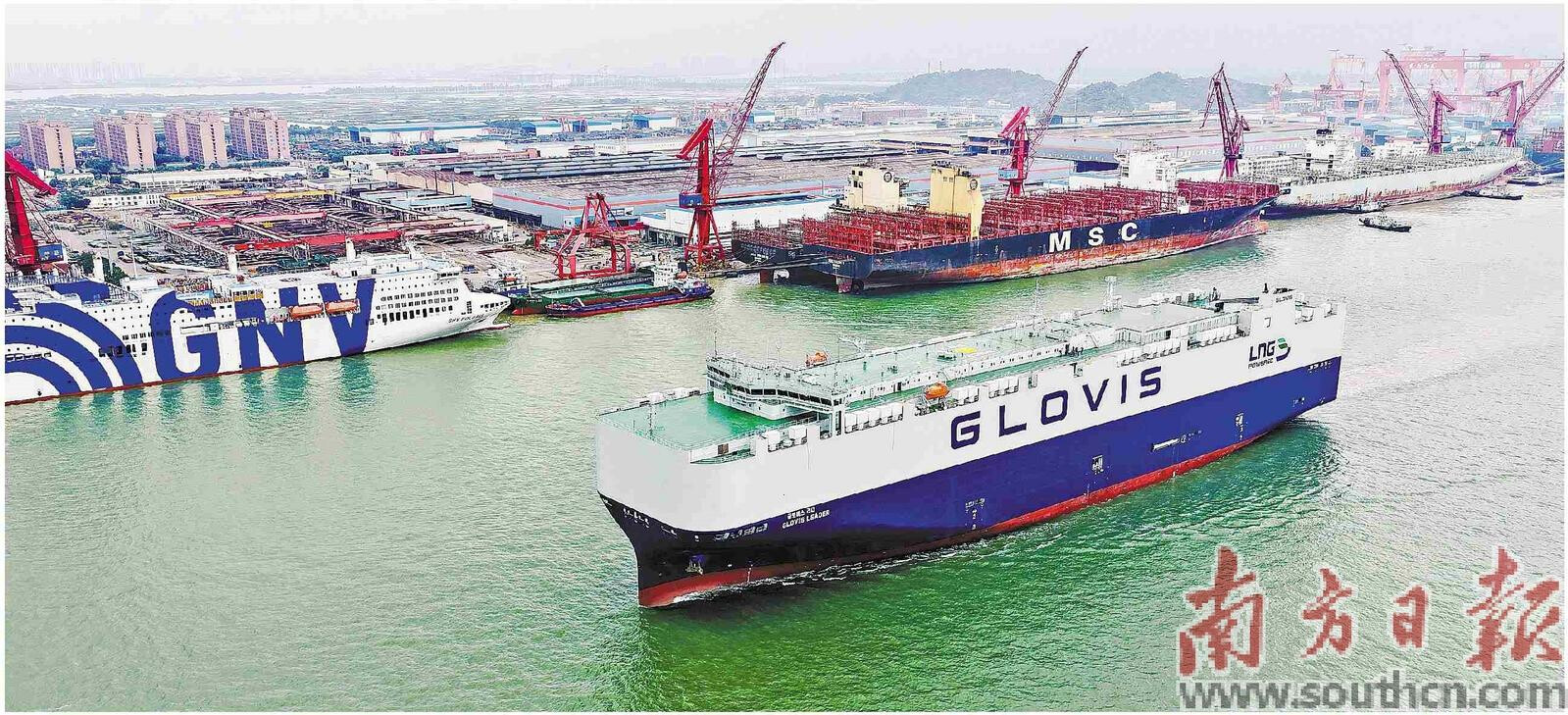 3月31日,中船广船国际为韩国HMM公司建造的10800车LNG双燃料汽车运输船1号船从广州南沙出海试航,这是目前全球在建的首艘万车级双燃料汽车运输船。