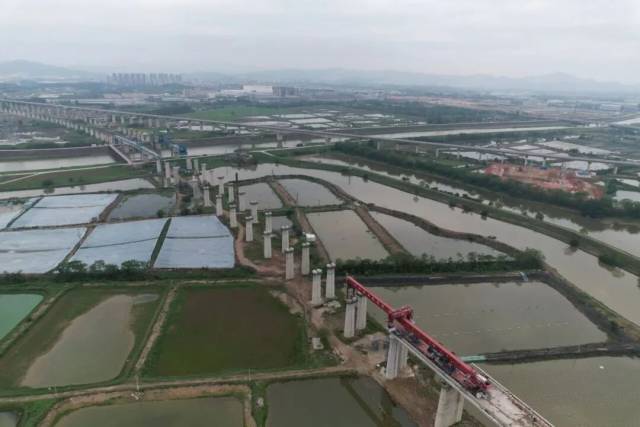 据了解,该项目位于佛山市高明区,站前土建工程全长约2.67公里,涵盖2座单线特大桥与1座双线特大桥,线路自高明站引出后,依次上跨杨梅河、高明河,最终顺接跨广明高速特大桥。