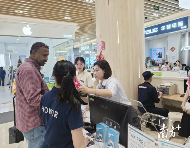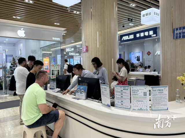 针对境外采购的实际需求,商场退税服务也进一步完善。目前已有27家商户开通购物即买即退,最高退税比例可达9%,单笔退税上限2万元。全程现场办结,大幅节省采购时间。一位连续多年来穗采购的德国客商告诉记者,这是他第三次来百脑汇采购,这里配套完善、政策便利,每次采购都很顺畅,采购体验很好。