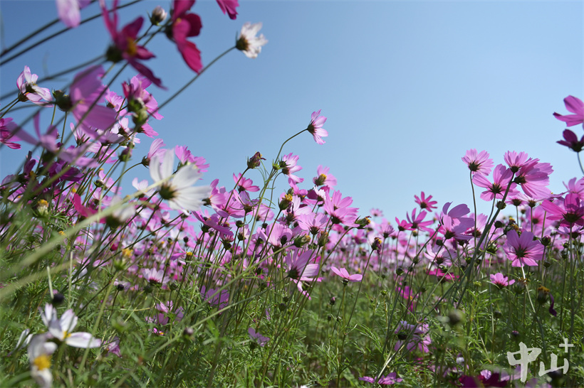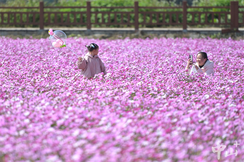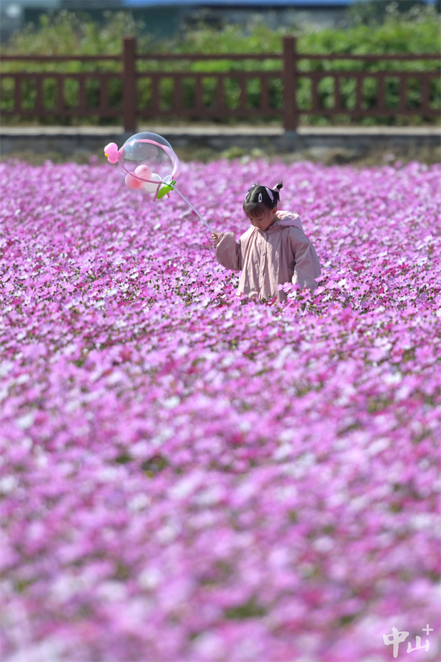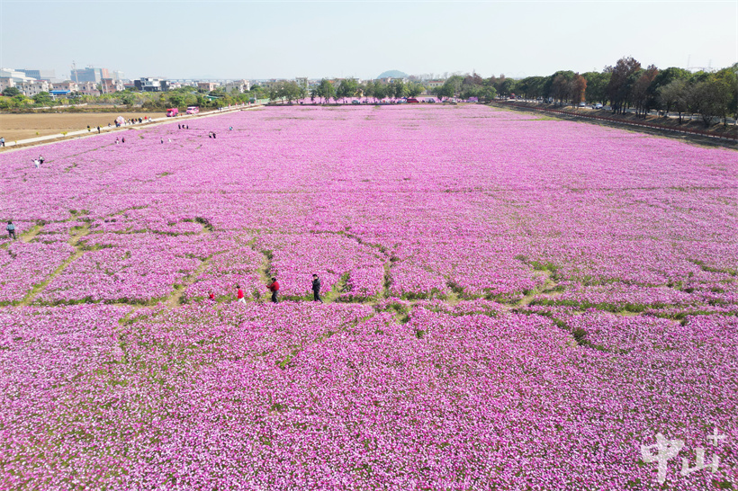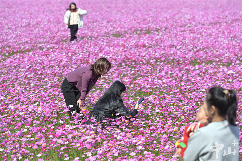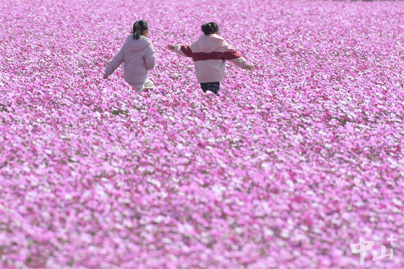 2月2日,黄圃镇石军村横石岛连片的格桑花盛开。在冬日暖阳下,盛开的格桑花随风摆动,如同粉色的海面上泛起了层层波浪。浪漫的粉色花海吸引了不少市民和游客前来观赏,人们在花海中徜徉,用手中的相机和手机记录下这冬日里的最美“春色”。