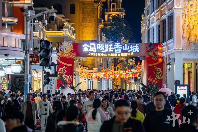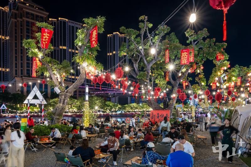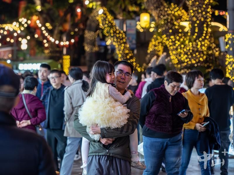 当夜幕降临,中山城市会客厅兴中广场商圈流光溢彩,古典建筑与变幻的灯光交相辉映,传统与现代文化在此汇聚融合。餐饮、娱乐、休闲等业态生机勃勃,为游客提供多元体验,拉动春节文旅消费。在激昂的乐曲中,数百束光影在水柱间交织跳跃,水幕电影奏响水的韵律,光影交错间映照出游客们一张张灿烂的笑脸,也成为中山通过治水还市民一城碧水的最好印证。