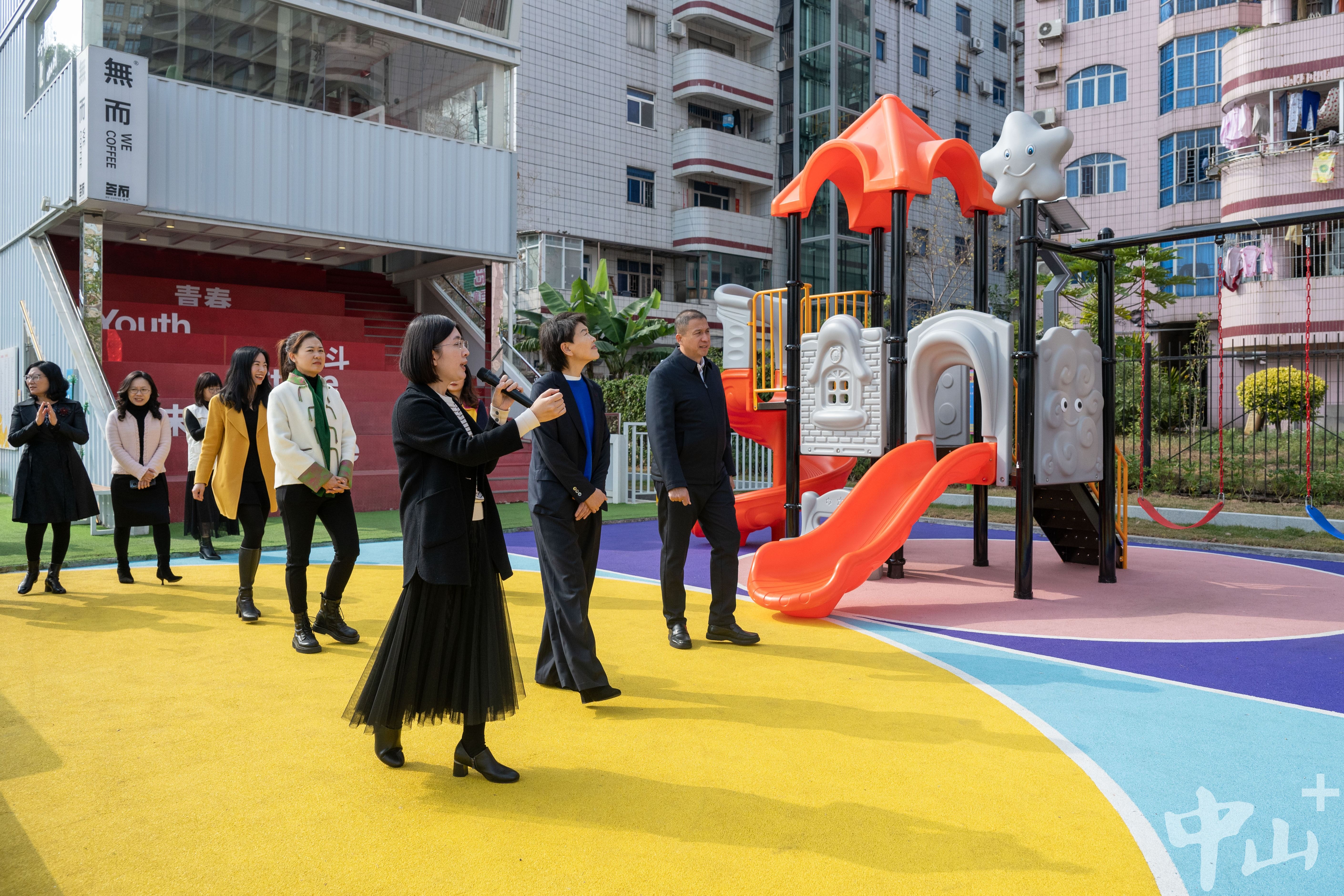 来自石岐中心小学的儿童代表徐梓萱用孩童的视角讲述这里的变化:“现在,过马路时脚下是彩色的斑马线,还多了一个小公园,里面有滑梯、有秋千,我和同学都喜欢去那里玩。”