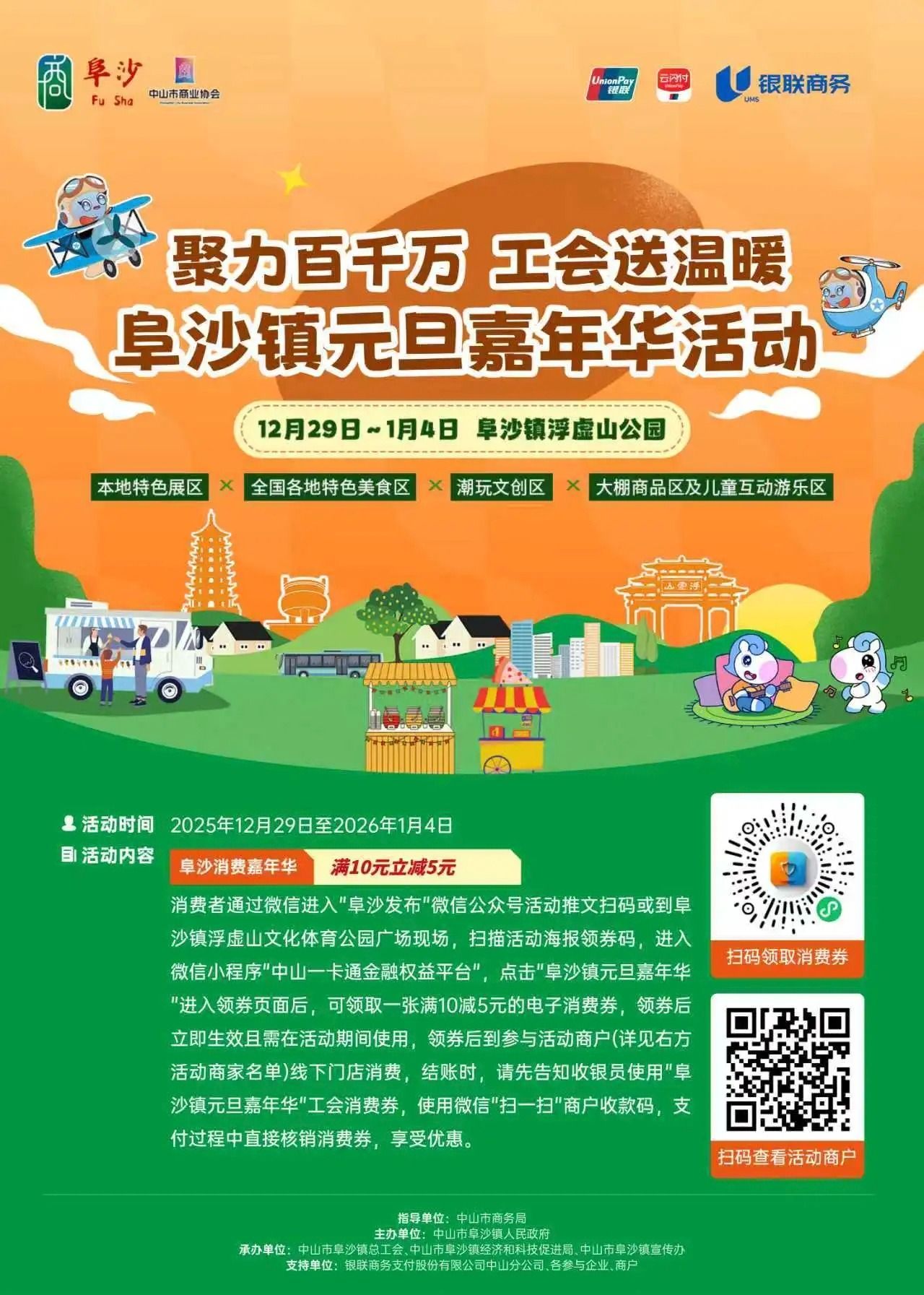 热闹氛围背后,是满满的惠民诚意。活动得到阜沙镇总工会、银联商务等单位支持,3000张“满10减5”电子消费券精准派发,市民现场扫码即可领取,在指定商户消费时直接核销。连续7晚的舞台表演同样精彩,明星模仿秀、魔术、川剧变脸轮番上阵,让广场始终洋溢着欢乐氛围。