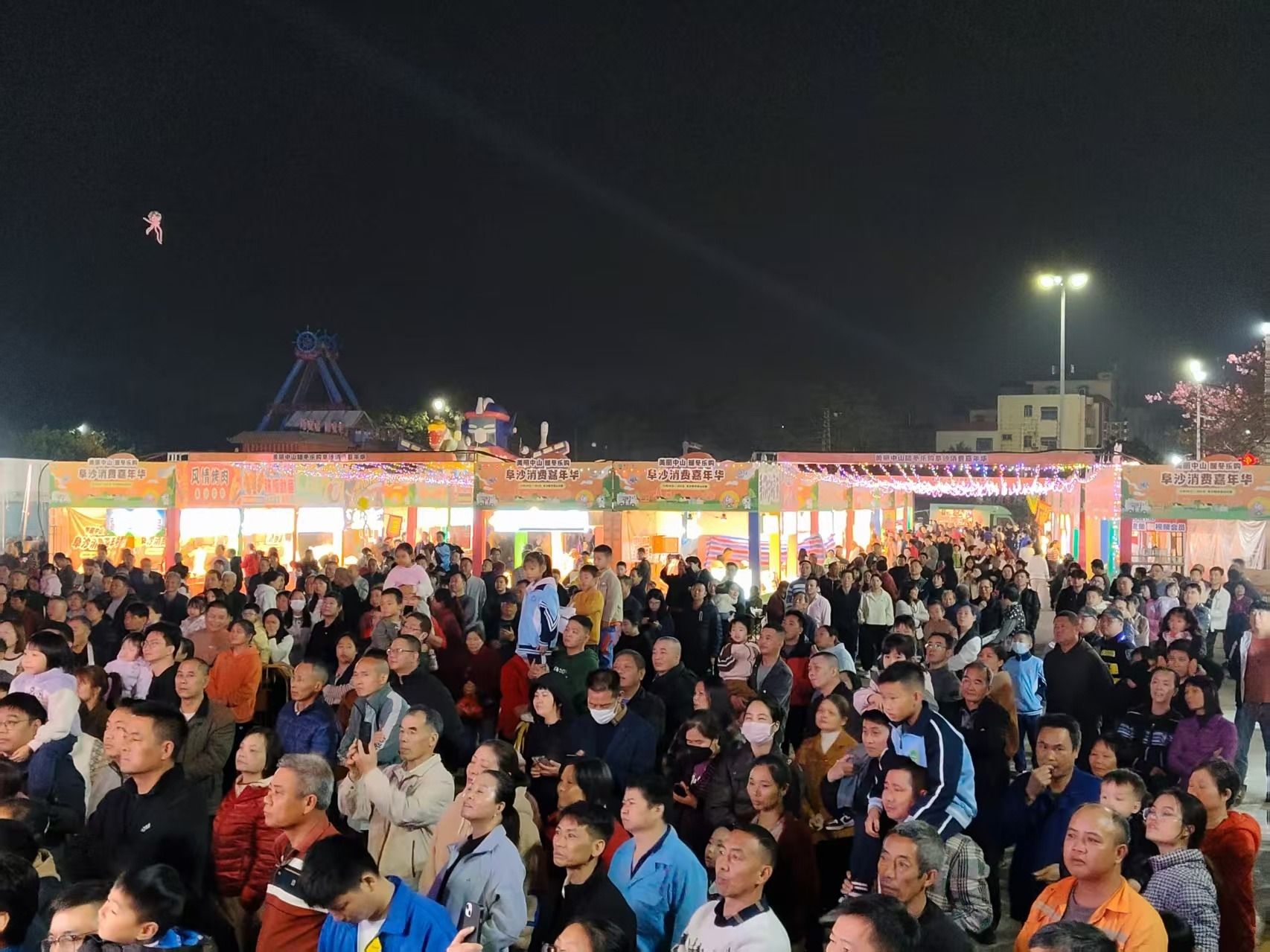 12月29日,夜幕初垂,中山市阜沙镇浮虚山文化体育公园广场已是灯火璀璨。一串串彩灯随风摇曳,与远处元兴塔的剪影相映成趣,来自市区及周边城镇的市民游客携家带口络绎不绝,欢声笑语中,“美丽中山·暖冬乐购”阜沙消费嘉年华正式拉开帷幕,为即将到来的午马年奏响了跨年序曲。