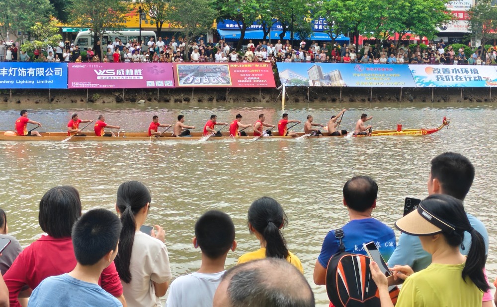 十三桡龙舟赛全程长达22公里,堪称名副其实的“水上马拉松”!赛事主河道紧邻古镇生态湿地公园,加上当日天气晴朗,前往现场观看龙舟赛的观众同比成倍激增。为得到绝佳的观赛位置,许多市民一大早就赶到现场,有些甚至带着座椅板凳,一饱这场精心准备的视觉盛宴,亲身领略传统文化的无限魅力。值得一提的是,近年来,市镇两级大力推进水污染治理,截至5月30日,镇内两大治水工程基本完成,未达标水体综合整治工程累计新建截污管网122公里,通水率90%;农村污水治理工程项目累计新建管网长度约126公里,通水率79%。其中,古镇中心河上游曹步片区的8条河涌焕然一新,如今赛事河段水清岸绿、风光宜人,为龙舟健儿们营造了绝佳的竞技环境。
