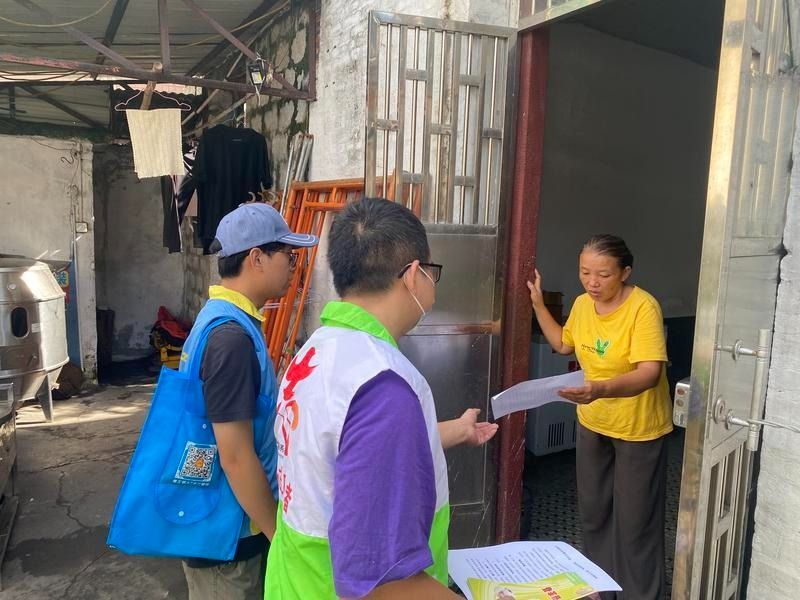 “白纹伊蚊,是登革热、基孔肯雅热的主要传播媒介,清积水、灭成蚊、防叮咬是最有效的措施……”为了让居民们了解基孔肯雅热疫情的危害,走街串巷的宣传队伍带着防疫手册与健康指南入户,用通俗易懂的语言向居民讲解假期防疫要点,宣讲防蚊知识,帮助住户翻盆倒罐清积水,让健康理念深入人心。