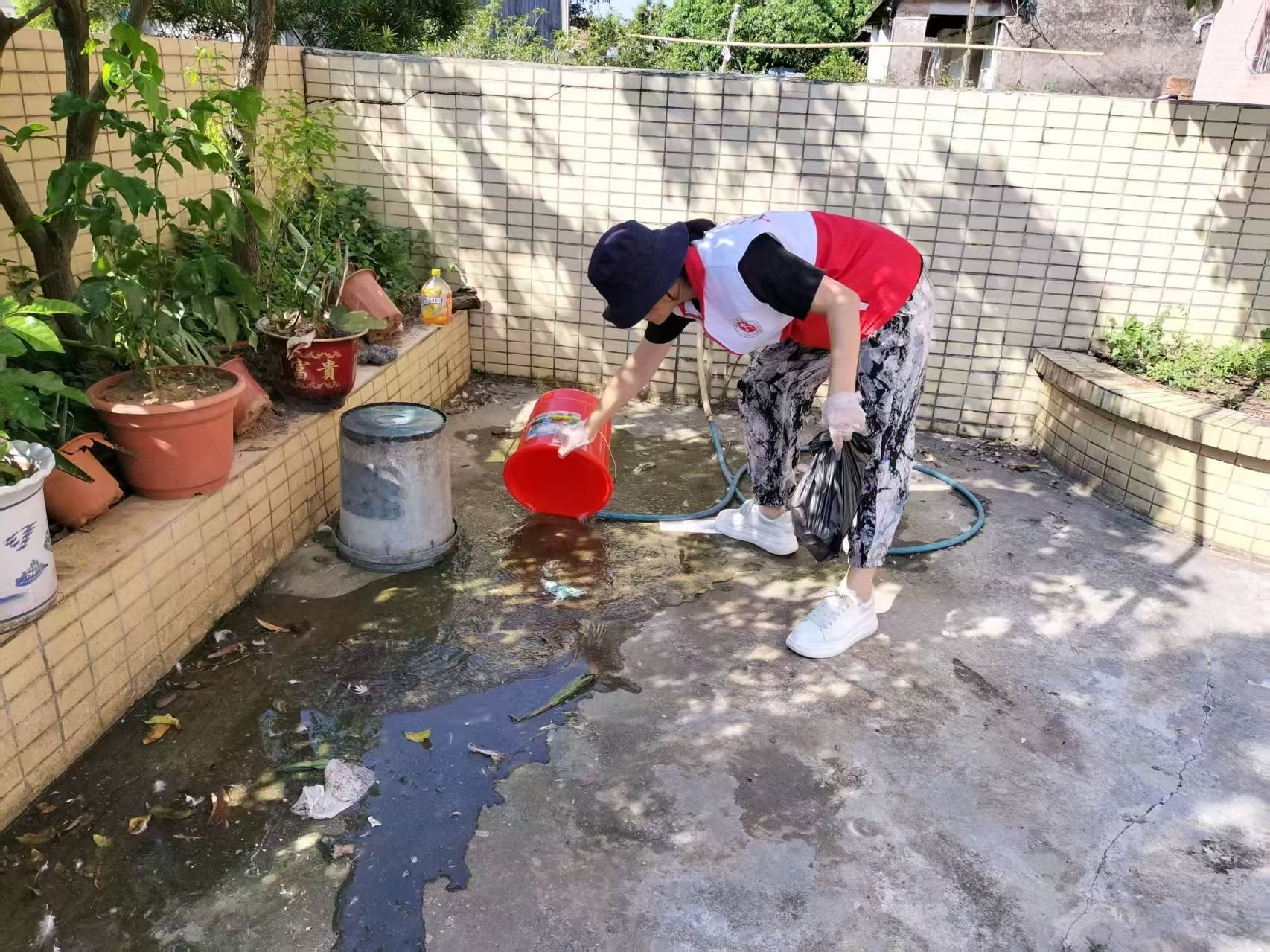 活动中,志愿者按照“分片包干、责任到人”原则,重点对门前屋后、排水沟渠、闲置容器、垃圾中转站等蚊媒孳生区域进行全方位清理,协助清理废弃轮胎、积水盆罐等易积水杂物300余件。同时,志愿者还逐家逐户发放《蚊媒防控指南》,引导居民自觉翻盆倒罐、清理阳台积水,从源头减少蚊虫孳生环境。部分村(社区)工作人员组成“消杀小组”,携带专业设备对下水道、垃圾桶周边等重点部位喷洒灭蚊药剂。专项行动累计清理卫生死角100余处,有效降低了蚊媒密度。