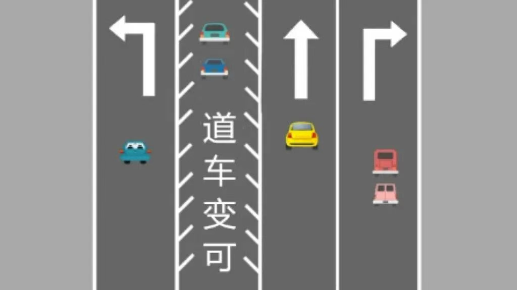 “可变车道”不是“虚实线车道”,一旦进入便不能变道,只能跟着信号灯行驶。为了避免走错车道,需提前根据车道行驶方向标志或显示屏指示的方向来选择车道。