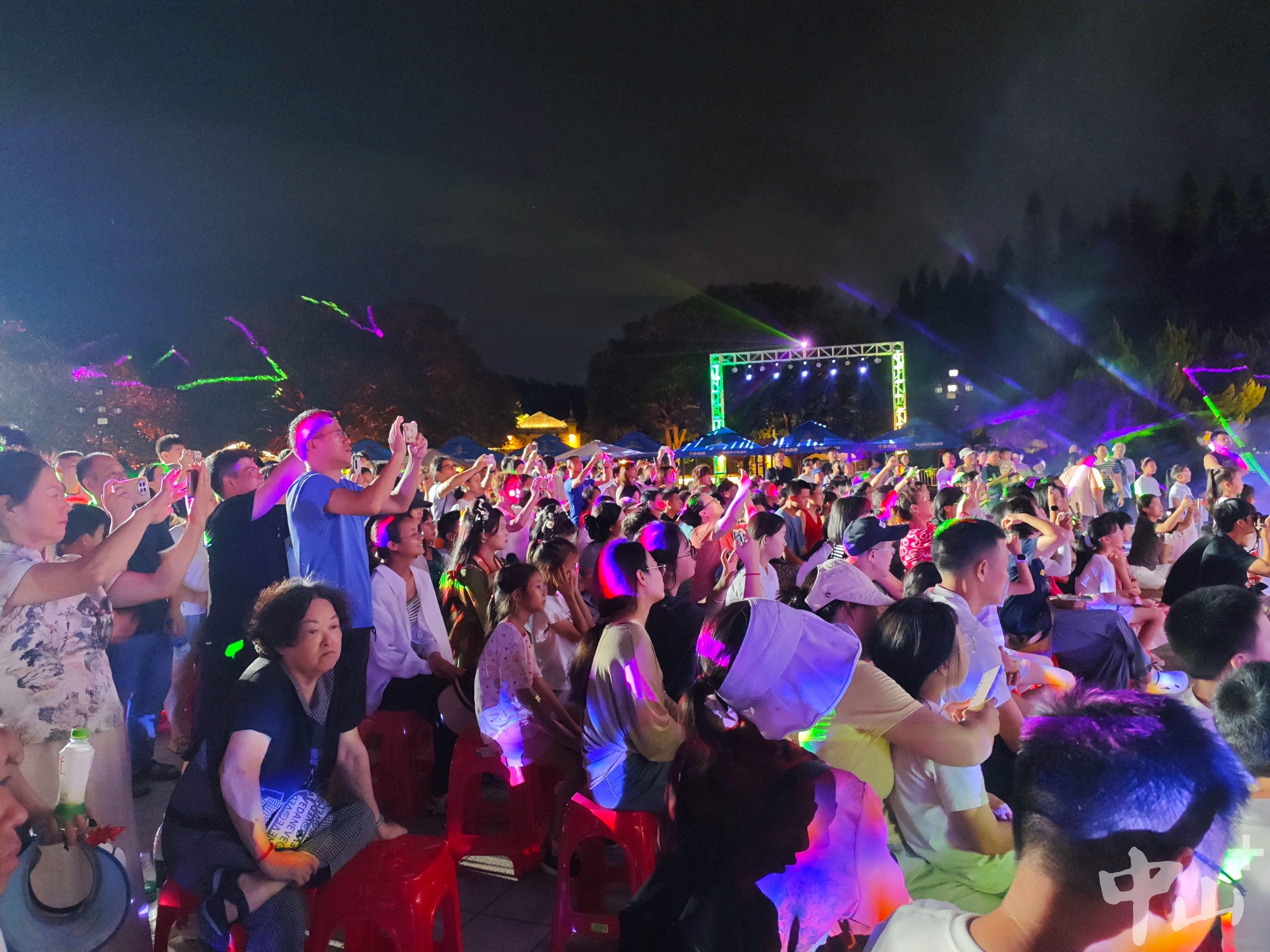假期后半程的星空音乐会则为夜游注入浪漫。10月4日至6日,美国西部街变身露营音乐现场,民谣演唱在中秋月光下流淌,露营座椅与星光灯饰营造出惬意氛围。“白天带娃玩项目,下午尝非遗咖啡,晚上和爱人听音乐会,这才是度假。”市民曾先生一家三口坐在草坪上,不时跟着旋律轻唱。猜灯谜、挂祝福牌等传统活动同步开展,让夜游兼具趣味与温情。