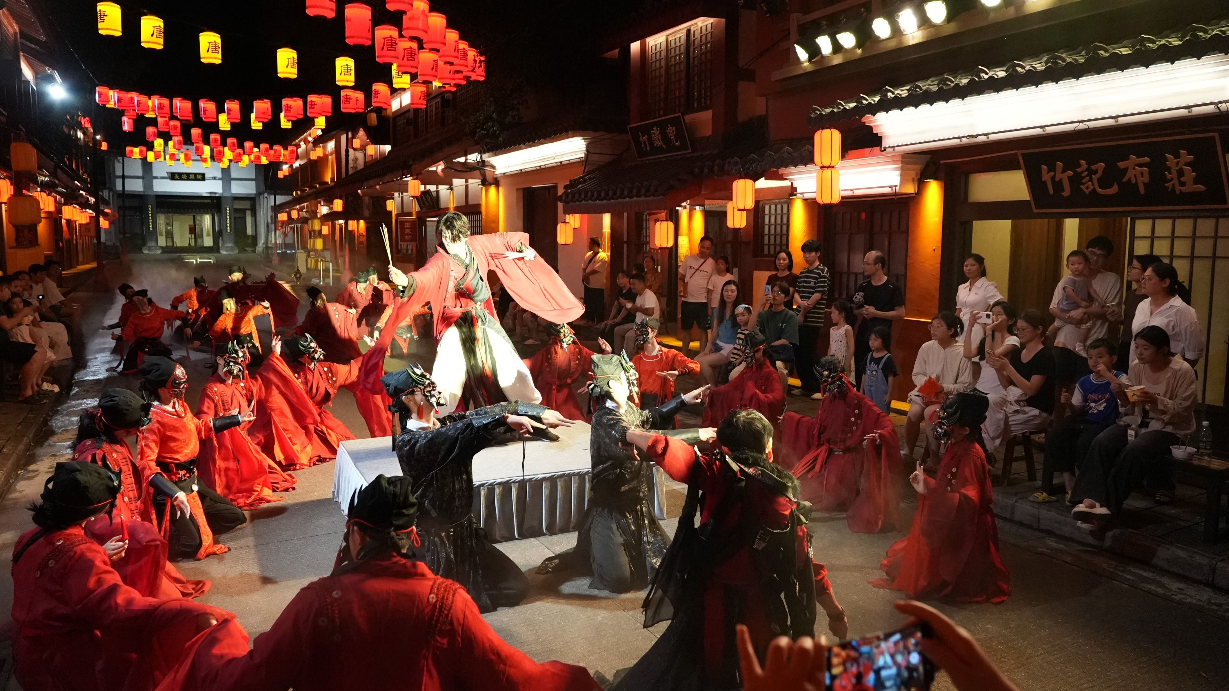 影视基因的活化呈现同样吸睛。9月27日启幕的“玲玉芳华”旗袍戏服展,以阮玲玉IP串联经典戏服,同步展映的《神女》4K修复默片,让游客在光影中对话百年电影史。10月3日,香港名导高志森现身罗马剧场,与影迷共赏《我和春天有个约会》。此外,《非遗醒狮》巡游、《鱼跃长安》鱼灯巡游、民国风巡游、《星光船票》情景歌舞剧、《君不见》情景歌舞剧、《千面古谶》非遗舞蹈等 70余项演艺全时段轮演,让游客“一步一景,一路有戏”。