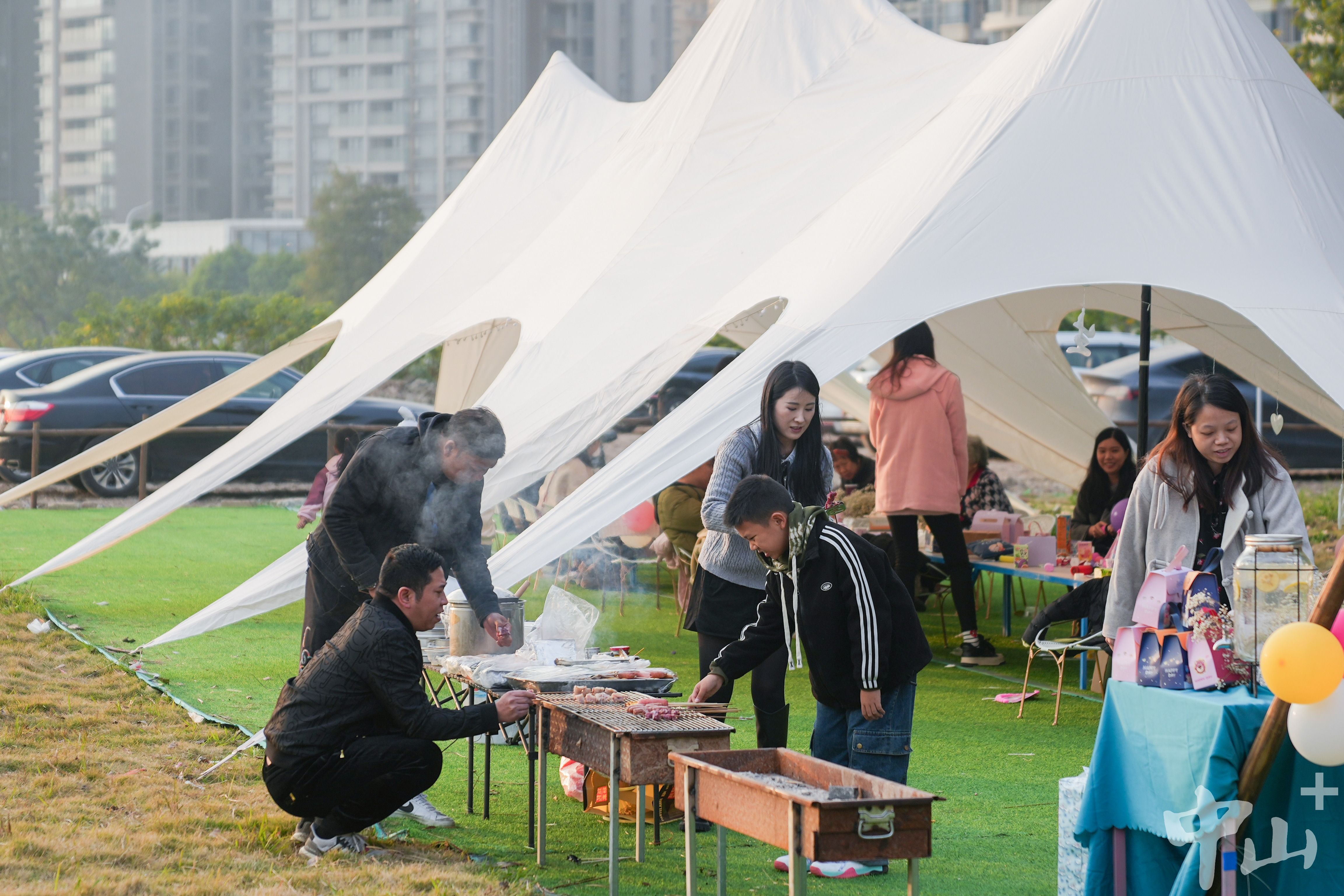 这个于2023年建成开业的营地式休闲场所,占地约18亩,依托户外开阔空间与多元设施,已成为家庭聚会、公司团建的热门选择,平日周末高峰客流量可达数百人次。营地主营烧烤、烤肉、自助餐、柠檬茶等休闲美食,配套设施丰富,涵盖室内棋牌、唱K、天幕帐篷、独立小帐篷,以及蹦床、秋千等儿童游乐项目,可满足不同群体休闲需求,与音乐节的休闲属性高度契合。