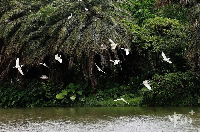 记者在现场看到,园区内湖面碧波荡漾,成群白鹭翩翩起舞,宛如一处天然“小鸟天堂”。优良的水质与完整的湿地生态系统,让这里成为鸟类栖息繁衍的理想家园,也为游客带来亲近自然、观鸟的独特体验。据悉,迪茵湖作为三角镇“一湖两山三江”生态旅游格局的核心,经过多年生态修复,已成为中山市同类鸟类种群最密集的自然栖息地之一,傍晚“落霞与白鹭齐飞”的景象已成常态。