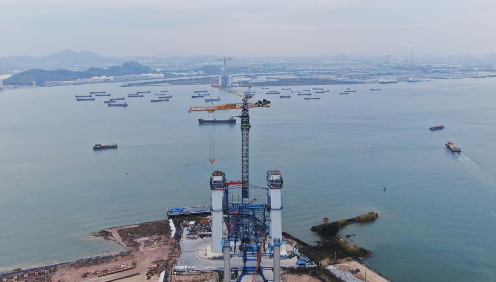 这是粤港澳大湾区超级工程狮子洋通道项目建设现场(2月6日摄,无人机照片)。新华社记者 王瑞平 摄