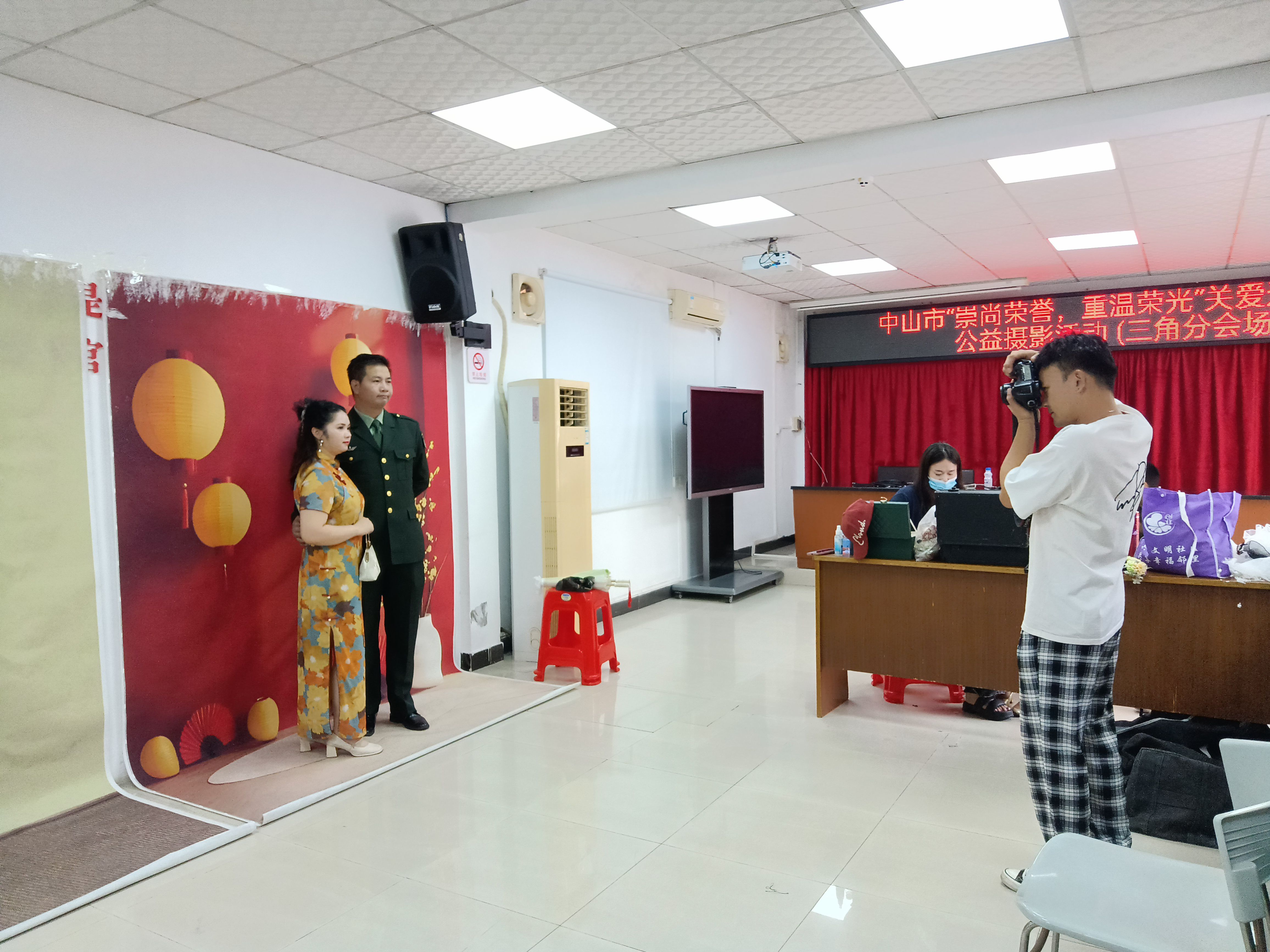 据了解,为营造退役军人尊崇氛围,展现社会对退役军人的关心关爱,切实增强退役军人获得感幸福感荣誉感,中山市“崇尚荣誉,重温荣光”关爱退役军人公益摄影活动首站在三角镇拉开帷幕,为辖区内的退役军人及家属免费拍摄全家福、婚纱照和亲子照,向退役军人表达敬意与关怀,助力他们重温荣光、记录美好。